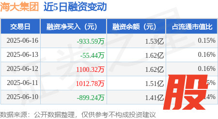 本站消息大资本,6月16日,海大集团(002311)融资买入1119.68万元,融资偿还2053.28万元,融资净卖出933.59万元,融资余额1.53亿元。