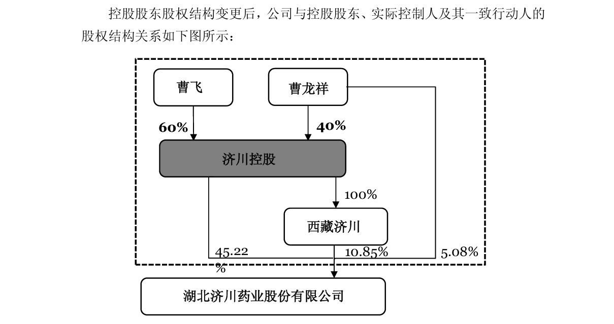 济川药业表示,本次股权转让系公司实际控制人家族内部资产安排。本次股权转让事项完成后,曹龙祥持有济川控股40%股权,曹飞持有济川控股60%股权,公司实际控制人由曹龙祥变更为曹飞和曹龙祥。