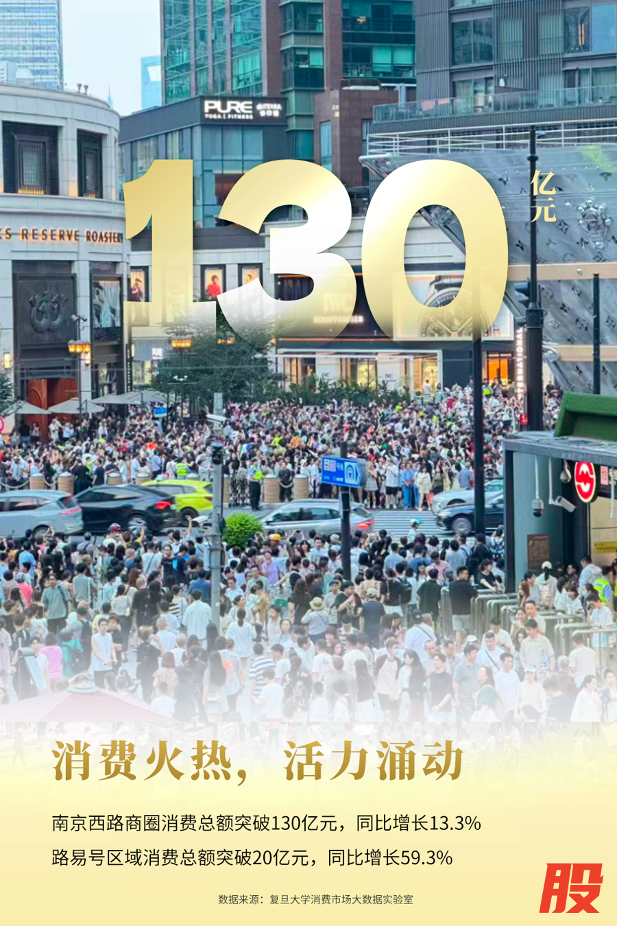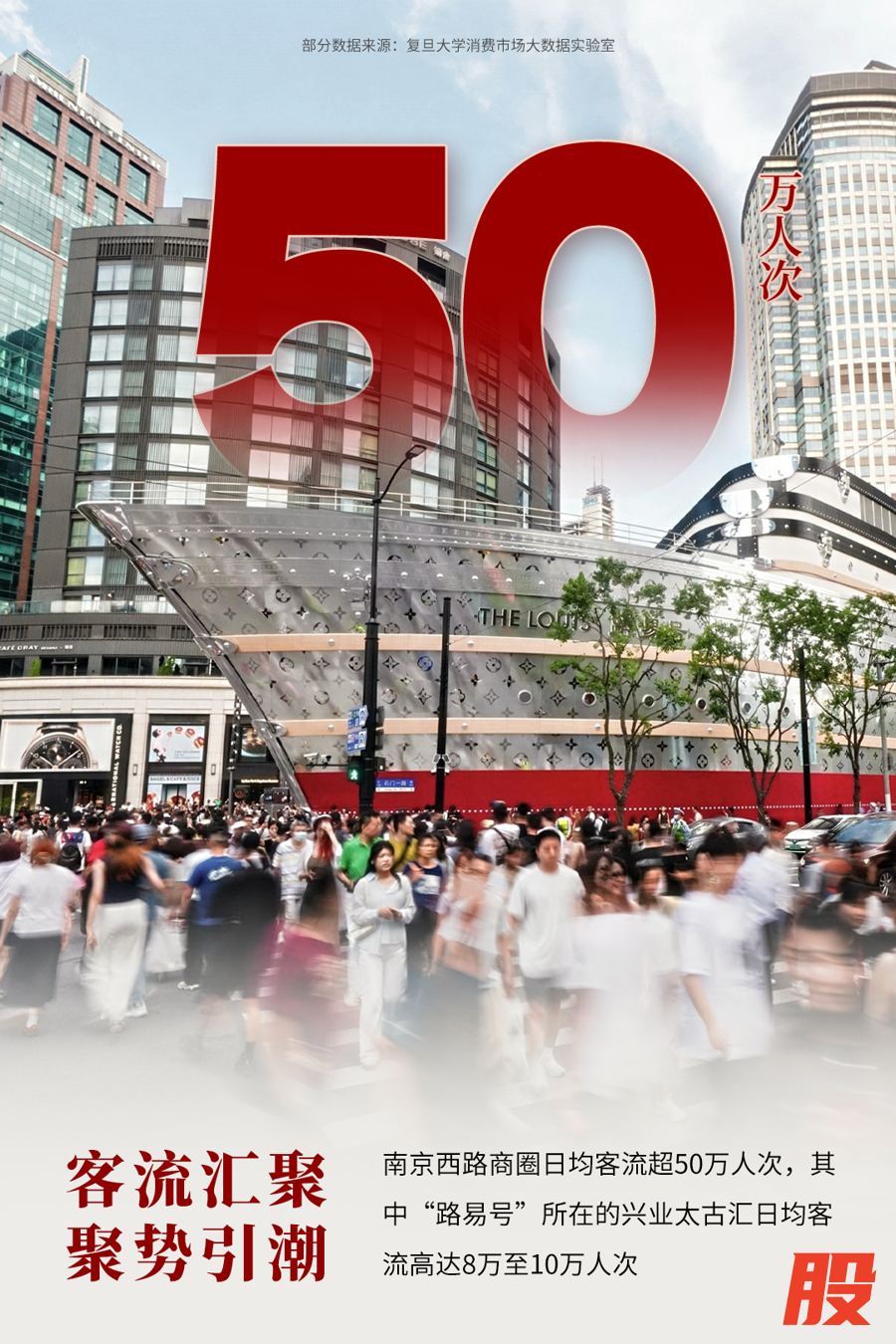“路易号”的落地对南京西路商圈的带动效应立竿见影,形成了强劲的消费“涡旋效应”。周边重点商场销售额实现翻倍增长。兴业太古汇日均客流高达8万至10万人次。